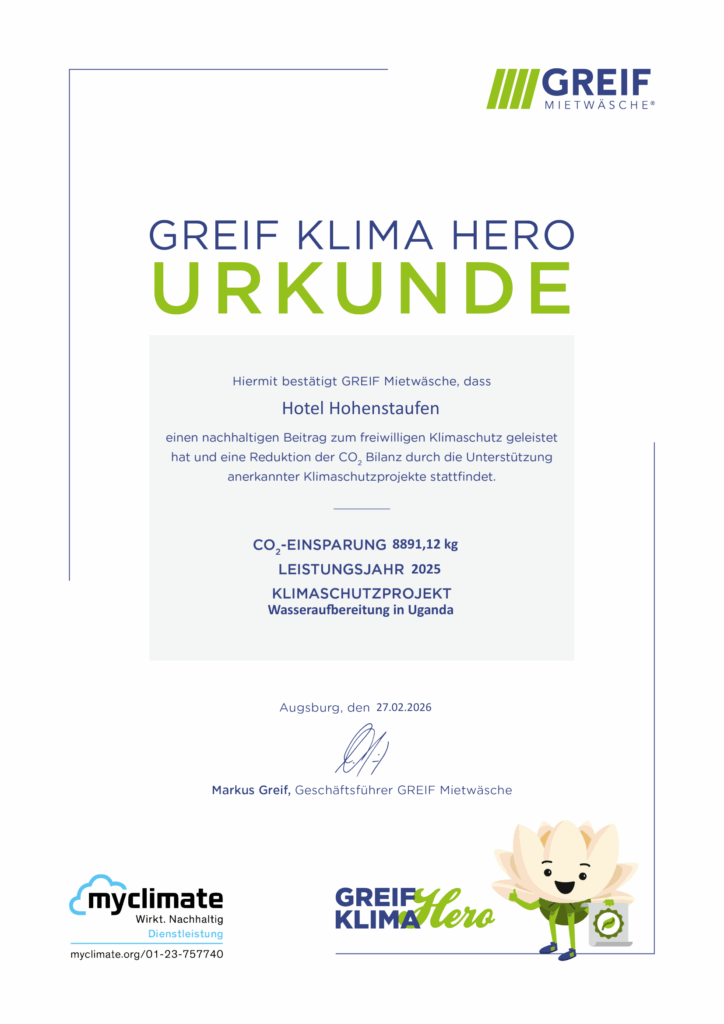 Ein verantwortungsvoller Umgang mit unseren natürlichen Ressourcen zum Schutz und zur Bewahrung unserer Umwelt ist Weg, Ziel und Maßgabe für unser wirtschaftliches und soziales Handeln als Hotelbetrieb.